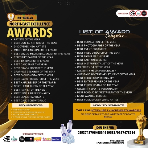 North-East Excellence Award brings together Young students, Tertiary Institutions, Tertiary Students, Government Officials, Non-Governmental Organizations, Business Entities, Public Figures, Influential People, and the General Public.