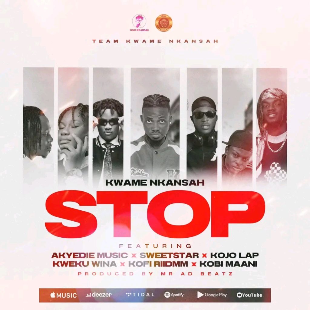 In a dazzling collaboration, Nkansah brings together the talents of AKYEDIE MUSIC, SWEETSTAR, KOJO LAP KWEKU WINA, KOFI RIIDMM, and KOBI MAANI. The anticipation is palpable, heightened by the mysterious title, “Stop.”