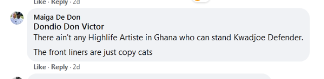 The Artiste Manager said “there ain’t any highlife artist in Ghana who can stand Kwadjoe Defender.
