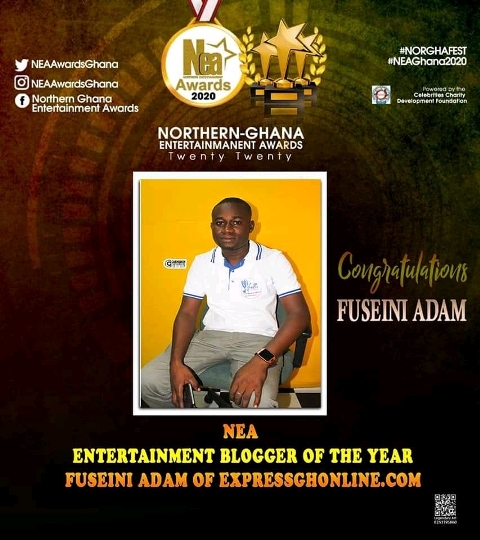 The management of xpressghonline wishes to express our profound appreciation to the event organizers of Northern Entertainment Awards (NEA) and the general public especially for voting massively for Mr Ibrahim Fuseini Adams to win the NEA 2020 Entertainment blogger of the year.